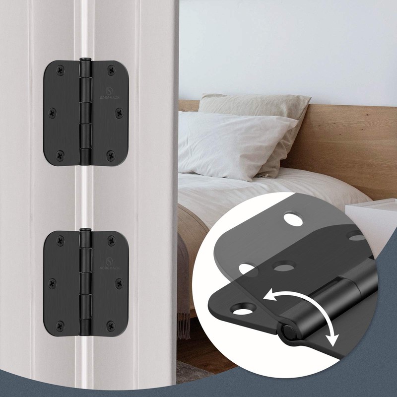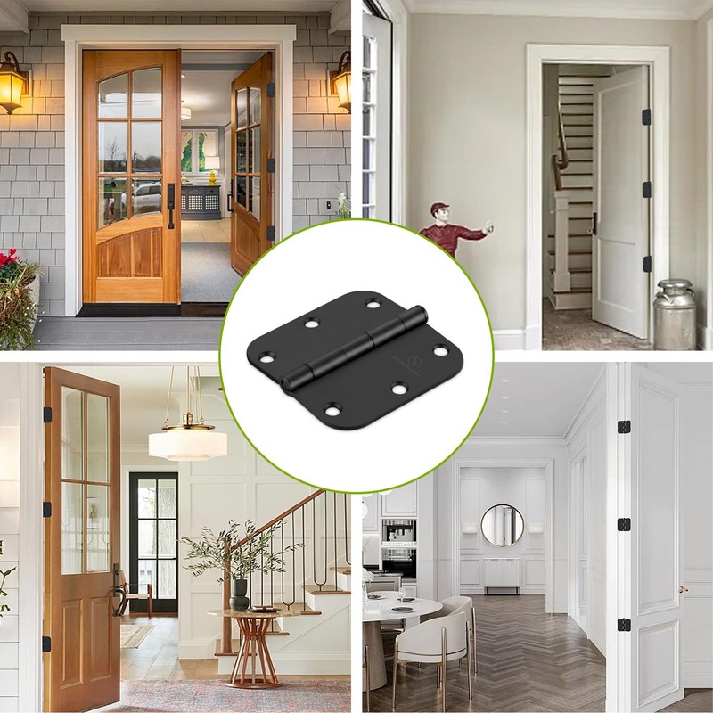 SORGMACH Door Hinges 3 1/2 Inch Matte Black 3.5 Inch Interior Hinges 5/8" Radius Round Door Hinge 3 1/2 Inch Iron Hinge 3 ½"x 3 ½" Door Hardware - 30 Pack
