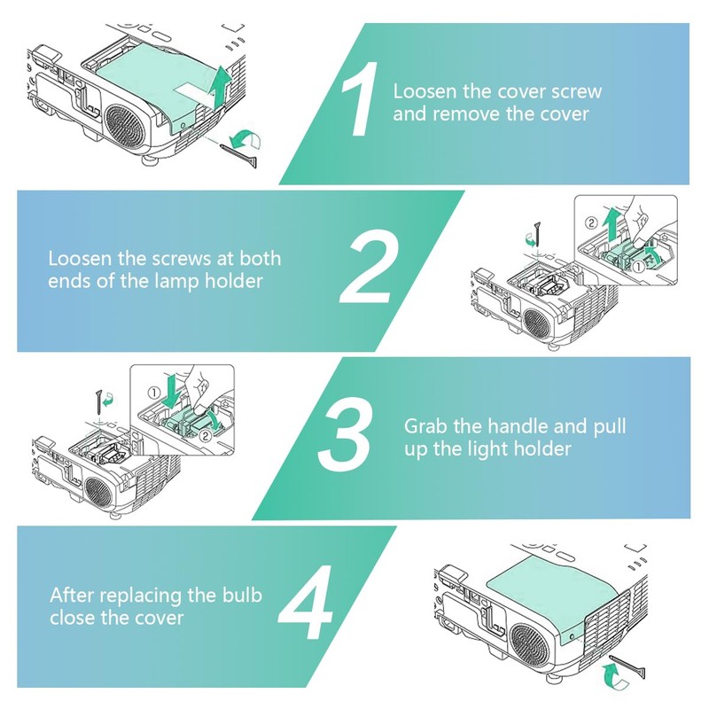- ◑ Quick and Simple to Install: Includes instruction manual & pair of gloves. When installing the projector, wait for the old lamp to cool down before replacing it, simple to install.