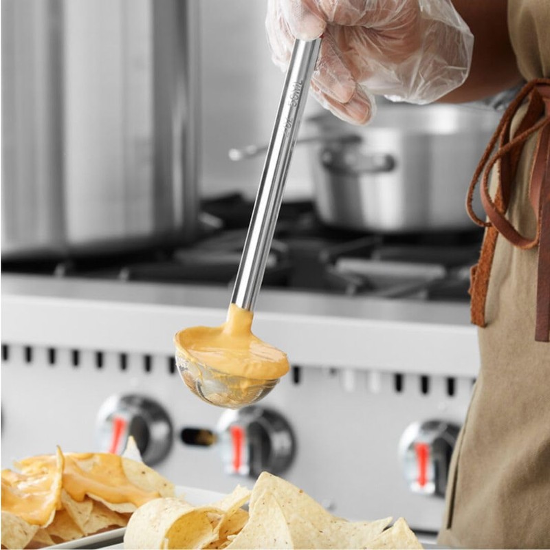 - Made from 1mm thick stainless steel, this ladle is durable and built to withstand daily use in commercial foodservice environments. It’s perfect for high-volume settings like buffets, salad bars, catered events, and more.