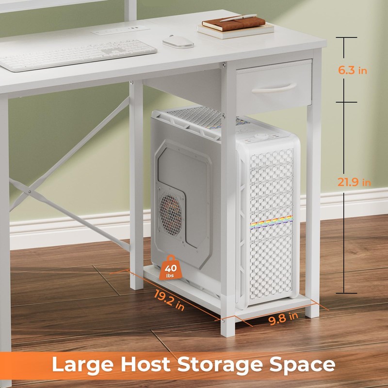 - Computer Tower Compatibility Space: The storage space under the drawer measures 19.2(L) x 9.8(W) x 21.9(H) inches and can withstand 40 pounds. It is sturdy, stable, and spacious, suitable for 95% of mid tower and partially full tower situations