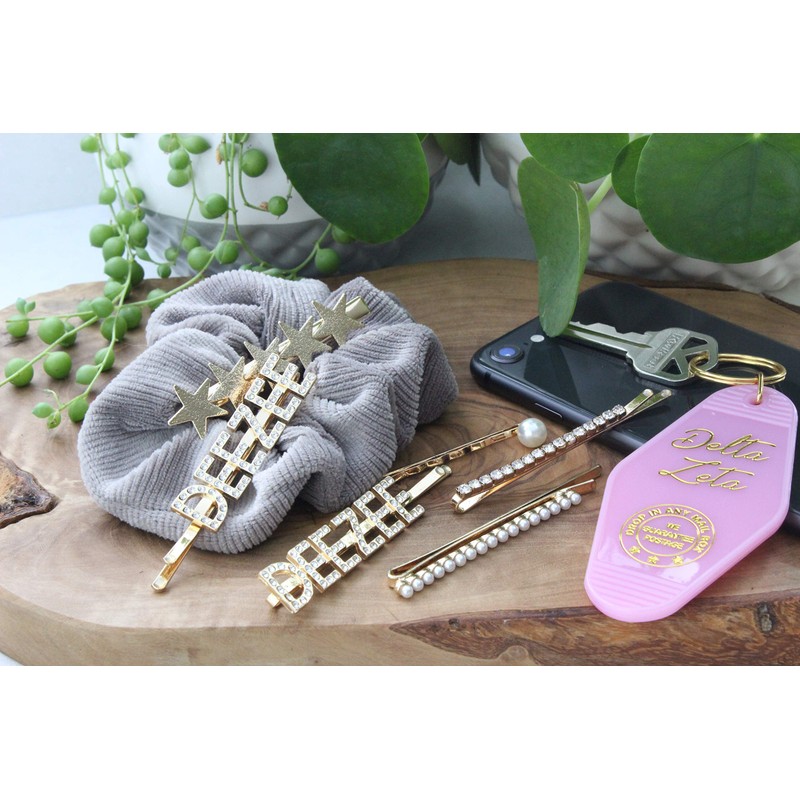 - FOUR ADDITIONAL CLIPS PER SET: Each set also features four accompanying clips to perfectly compliment the Sorority Rhinestone Clips. One gold and single pearl, one gold with multiple pearls, one gold with multiple rhinestone and a gold star lined clip.