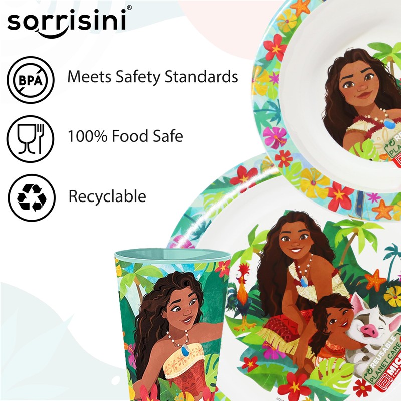 Sorrisini Moana Reusable Children's Tableware, Children's Plate for Nursery, Scoula, Baby Set with Plate, Bowl, Cup 260 ml, First Meal Weaning Set, Plastic, Moana
