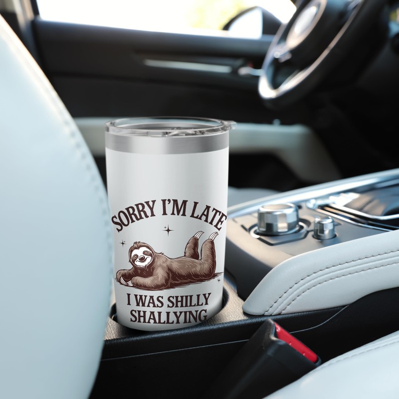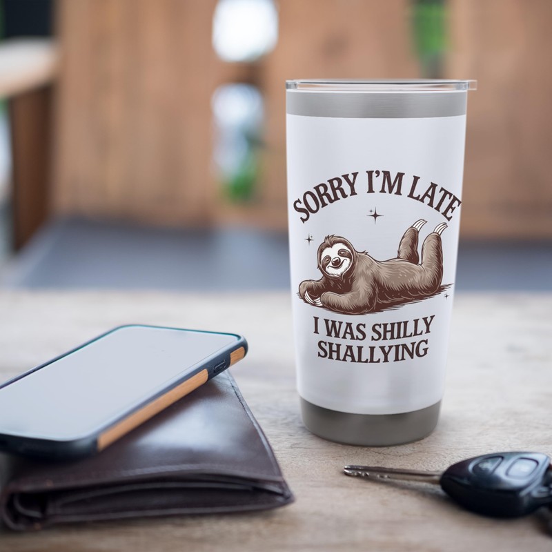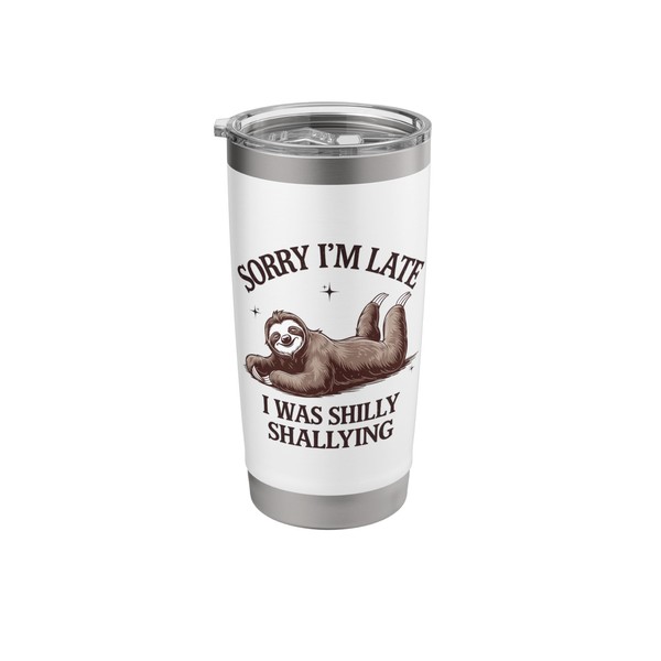 Sorry I'm Late I Was Shilly Shallying Funny Lazy Sloth Retro Stainless Steel ...