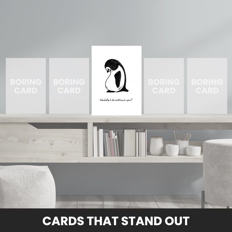 Let our 'Waddle I Do Without You?' miss you cards speak volumes about your sentiments. They are not just cards, they are cute penguin messengers of love and goodwill.