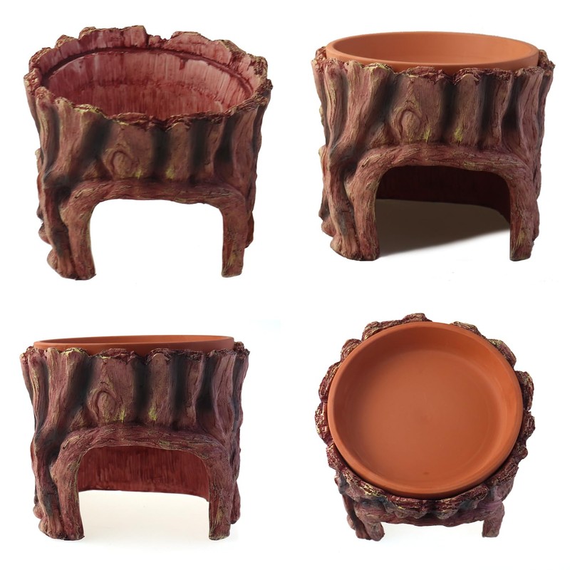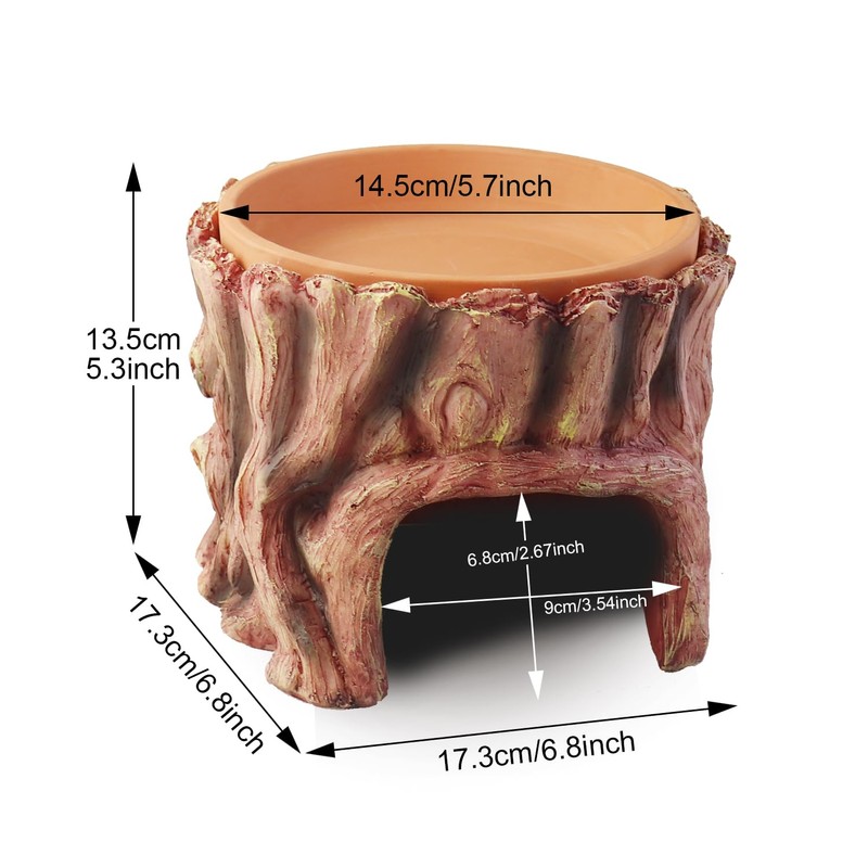 - 2 in 1 Reptile Cave:Provides comfortable and secure hiding place, add water in terracotta dish to effectively increase the humidity of the reptile home, resin base also can be used as food dish, both are detachable, Meet the various usage needs of small reptiles.