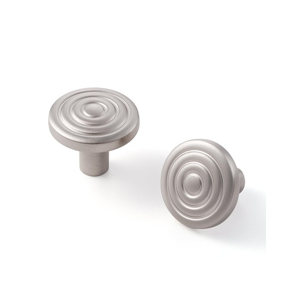 SORWDUERM 2 Pack Brushed Nickel Cabinet Knobs Satin Nickel Kitchen Solid Round Dresser Drawer Knobs Simple Cabinet Hardware for Cupboard Drawer Pulls Zinc Alloy
