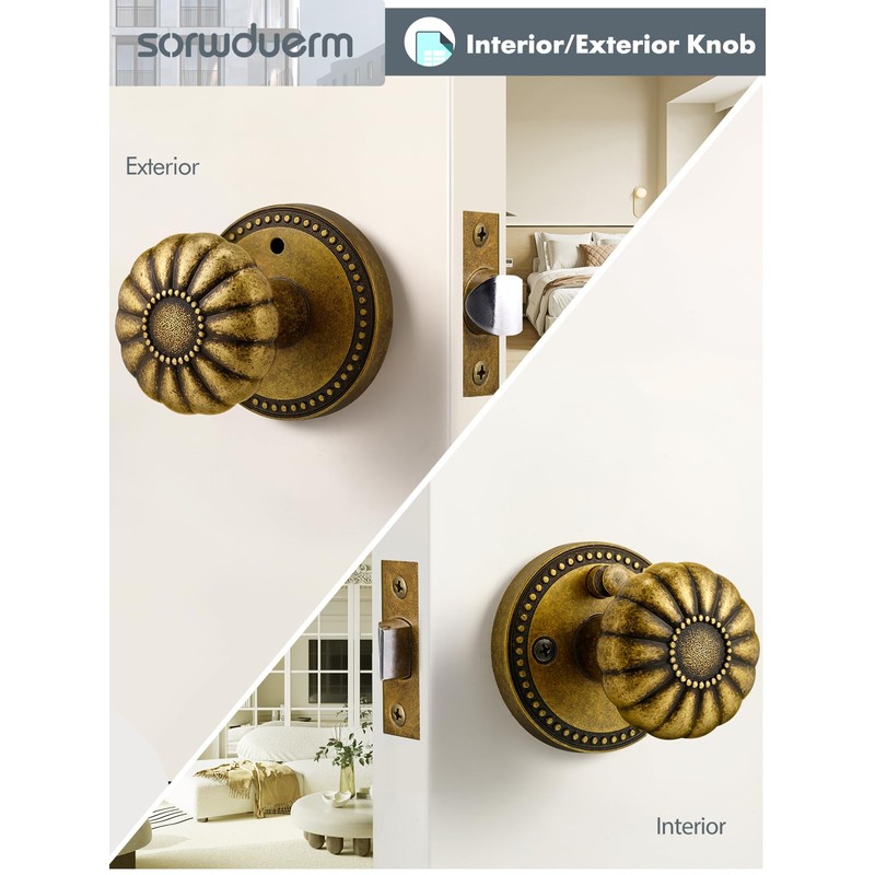 - 【Material】Door Knob Made of Heavy-Duty Zinc Alloy, Advanced Electroplating Crafted in Luxurious Antique Brass, They Look Very Shiny and Gorgeous. Add a Touch of Luxury to Your Home