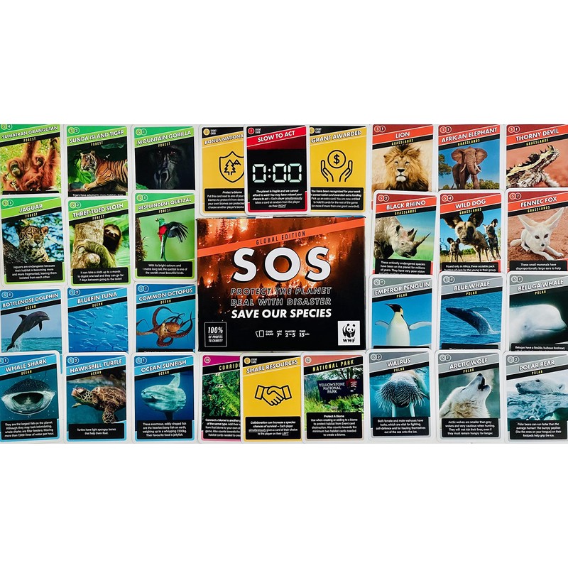 - AS SEEN ON SKY NEWS & THE ONE SHOW - Rummy meets Top Trumps with a modern twist… SOS Save Our Species is an exciting card game powered by surprise climate events. Whether you have the Three-Toed Sloth or Bottlenose Dolphin… protect your biome and save your endangered species from going extinct!