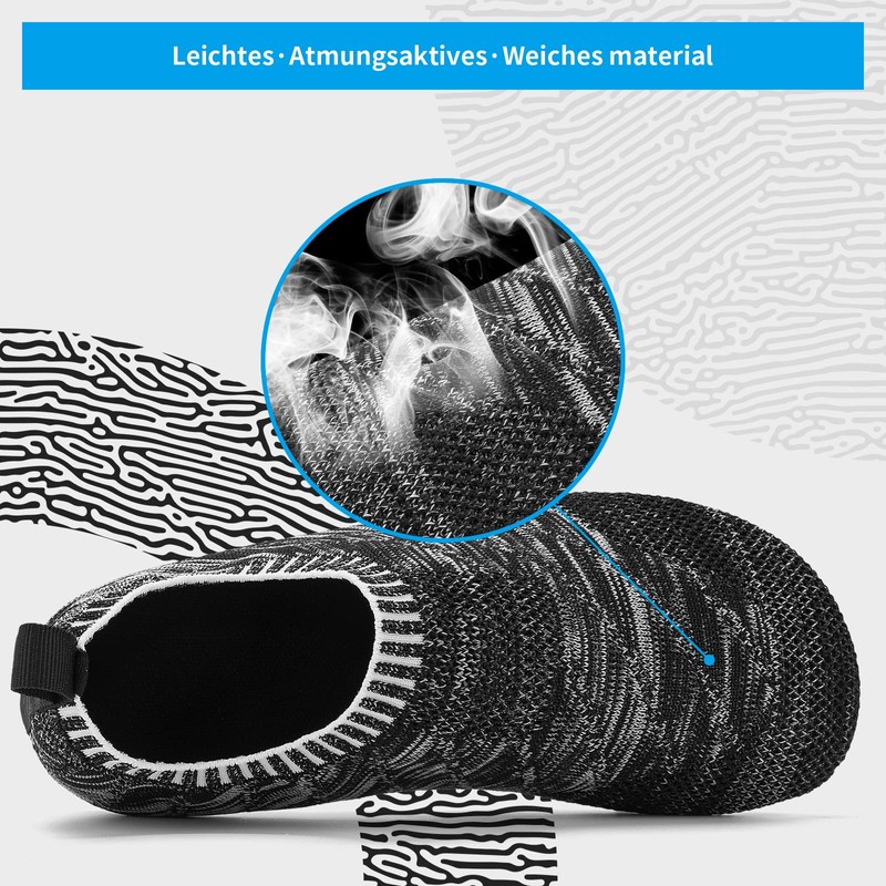 Sosenfer Unisex Slippers, Comfortable Non-Slip, Slip-On Flat Slippers, Cosy, Black / Grey, 40 EU