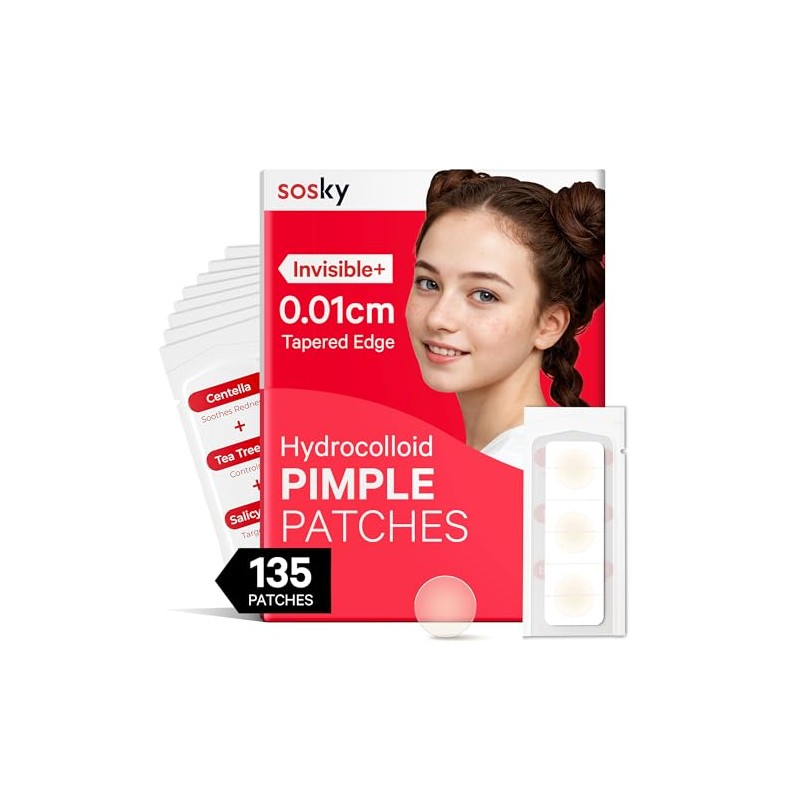 Sosky Pimple Patches for Face, Hydrocolloid Acne Patches, Zit Sticker for Face and Skin 135 Count 10mm