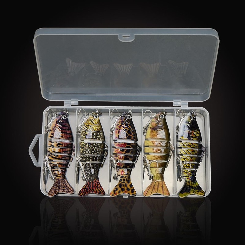 - NICE PACK: You will receive 5pcs different colors bass fishing lures and a tackle case, each bait is placed in a separate grid, an Ideal gift for fishing enthusiasts, these bass lures promise an unforgettable angling experience
