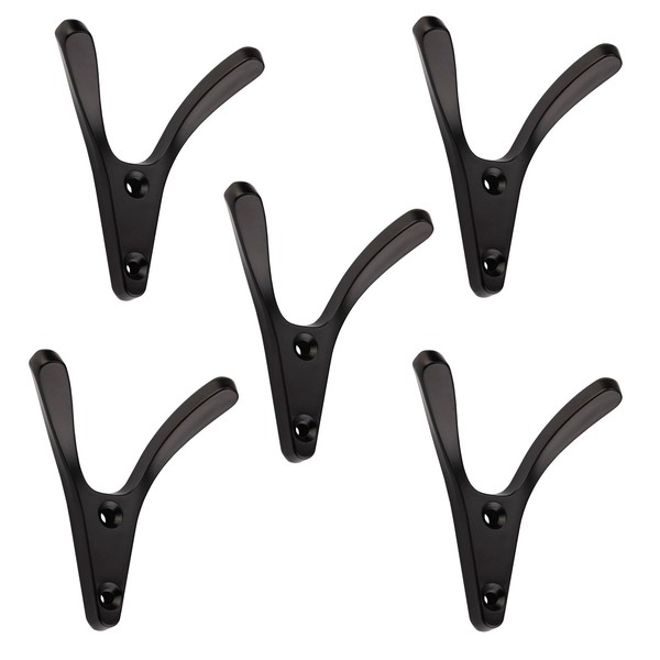 SOTECH Volta Coat Hooks 77 x 68 x 30 mm Matt Black Pack of 5 Sturdy Die-Cast Zinc Wall Hooks with 8 mm Material Thickness Jacket Hooks with Rounded Edges