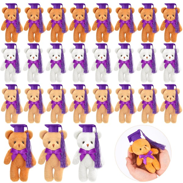 Sotiff 24 Pcs Mini Graduation Bear Plush Gift Stuffed Animal with Purple Cap Gift for Her, for Him, Class of 2024 Graduation Present for College High School for DIY Keychain Xmas Decorations