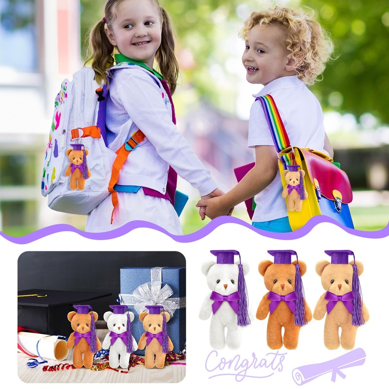 - Mini Bear Toys Set: you will receive 24 pcs of mini graduation bears with purple hat and bow, with 3 cute colors, 8 pieces per color; Sufficient quantity and different styles to satisfy your preferences, you can also share them with your family or friend