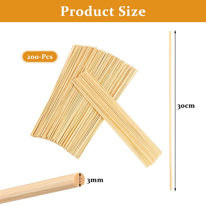 - Suitable size: the wooden sticks measure 300 mm x 3 mm x 0.3 mm. You will receive 200 pieces. Wooden Sticks All wooden sticks are lightweight, sturdy and durable making them ideal for crafts.