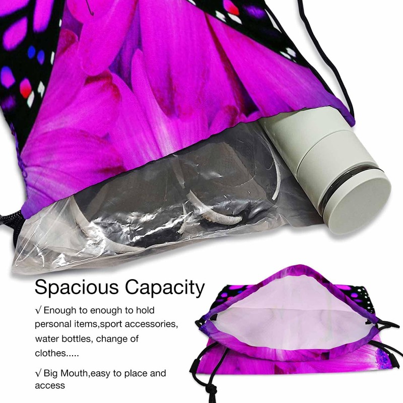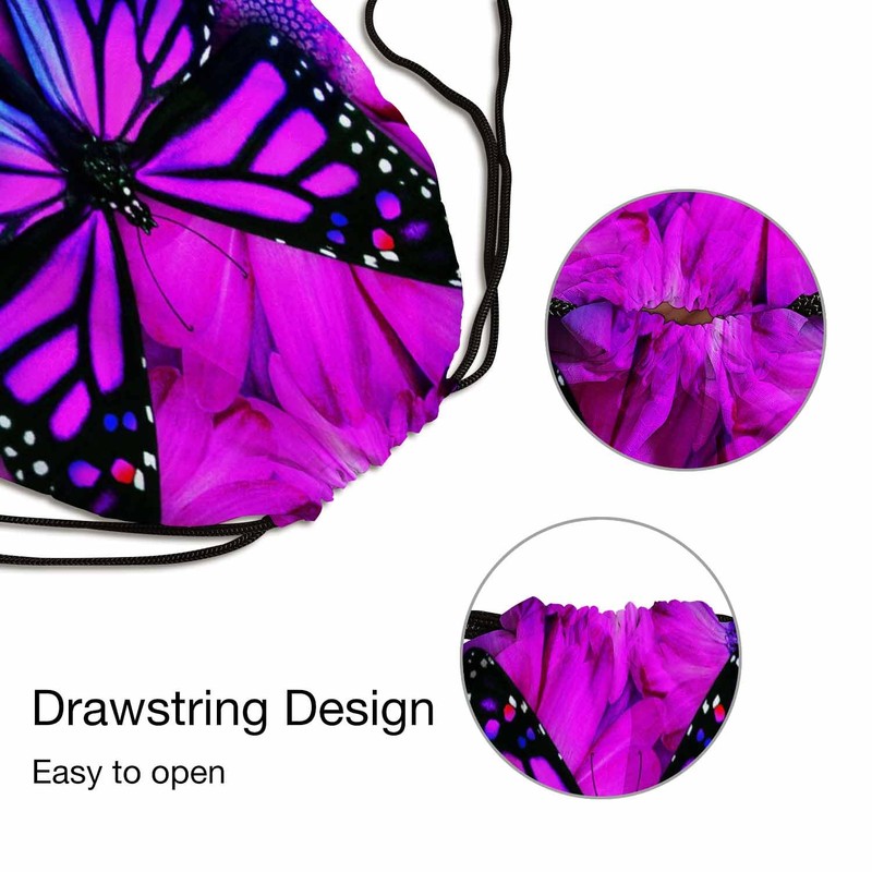 Sotunad Purple Butterfly Drawstring Backpack Beautiful Insects Chrysanthemum Background for Swim Bag for Beach Swim Swimming Pool Drawstring Bags