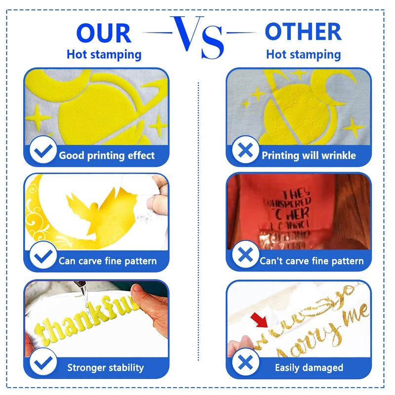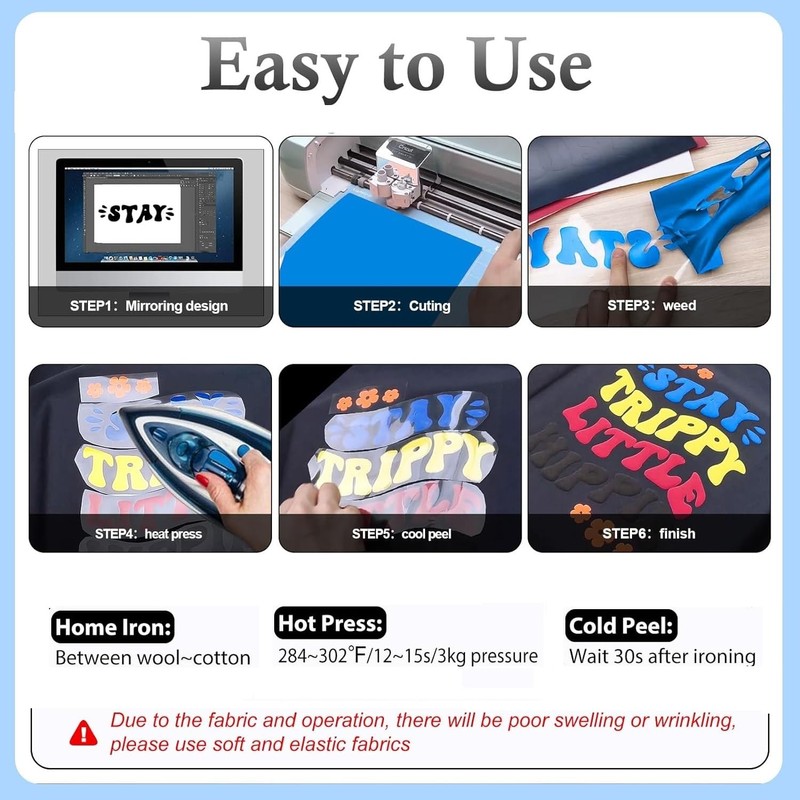 • How to use: we strongly recommend using a transfer press. If there is no heat press, we recommend using an iron at a temperature of about 130°C to iron the pattern for 30-40 seconds. Be sure to press the iron down firmly so that the pattern is evenly heated and pressurized to achieve even foaming. After ironing, the foam should cool sufficiently