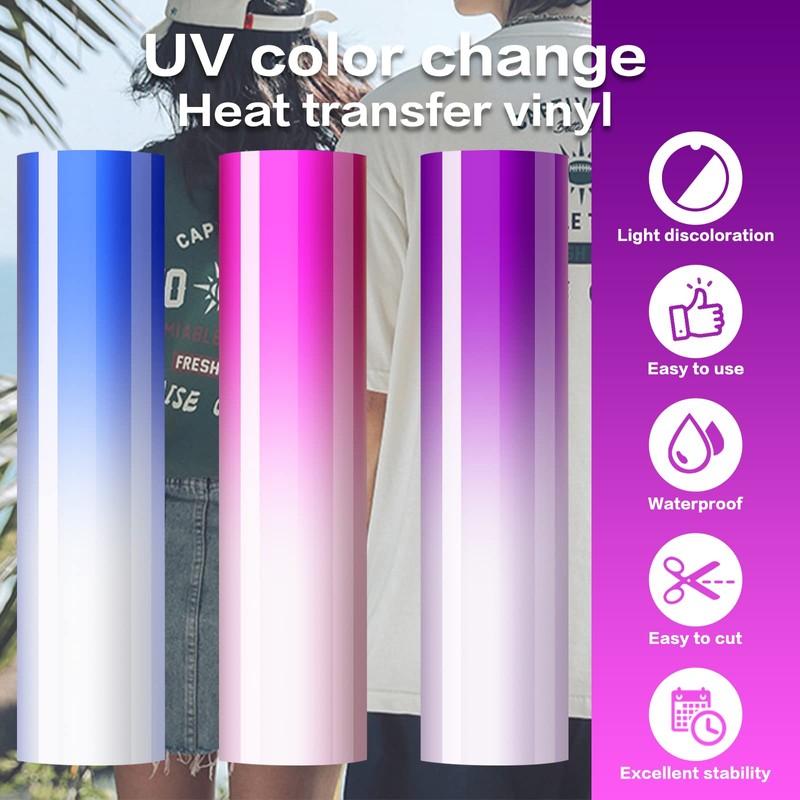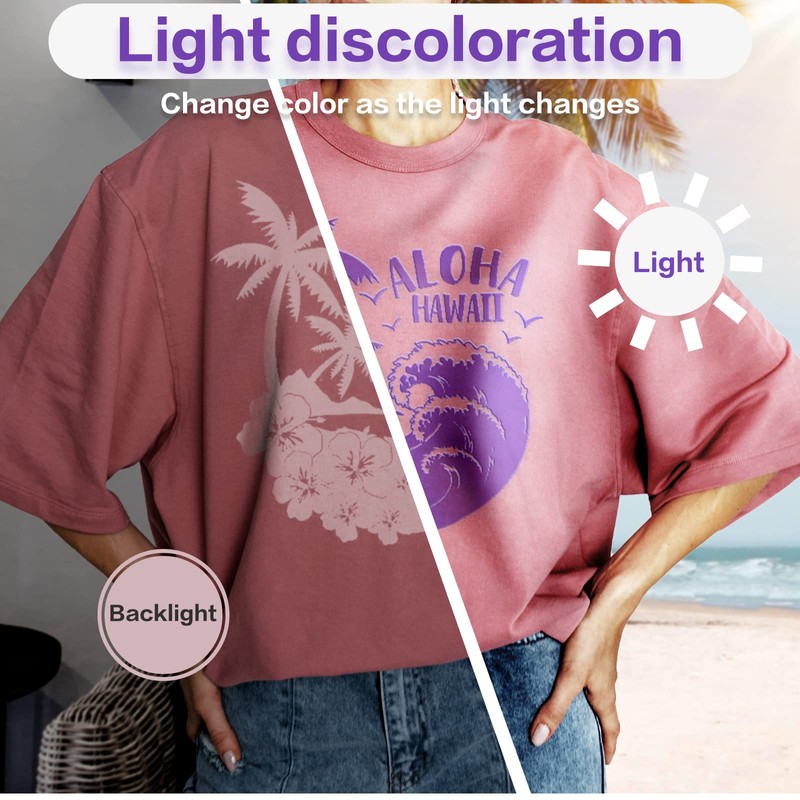 • Plotter film rainbow: you will receive a total of 8 pieces A4 heat transfer vinyls, 5 pieces normal + 3 pieces light changes, 5 pieces normal: black, yellow, red, white, blue, 3 pieces light changes: light purple, purple, blue, with which you can choose and adjust