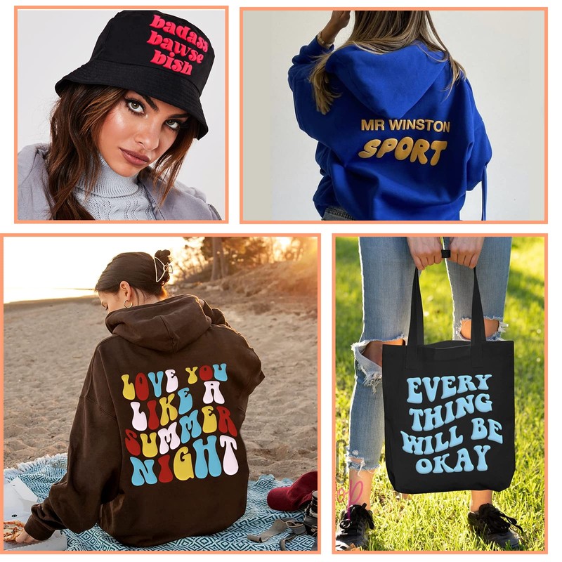 • DIY fashion gifts: Customise your T-shirts, hats, handbags, etc. You can adjust them to your favourite shape to create your own unique fashion. You can also give the designed garments to friends and relatives or as small gifts for different holidays.
