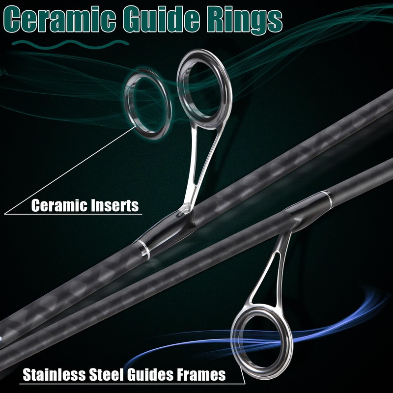 • HIGH QUALITY GUIDE RINGS: The rod guide rings are made of stainless steel, which is firm and beautiful and also effectively enhances the protection of the rod section. The smooth surface of the guide ring can minimize friction and not easily hurt the fishing line. Corrosion-resistant, it can easily cope with sea fishing.