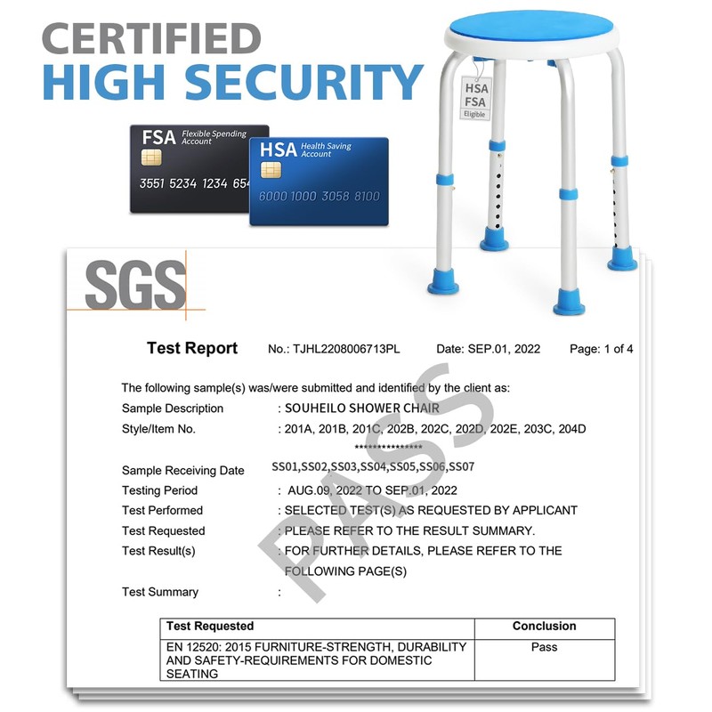 - 【FSA/HSA Eligible Shower Chair】This shower chair is FSA/HSA eligible. All of our products have been applied for HSA/FSA eligibility. You can purchased them with most FSAs (Flexible Spending Accounts) and HSAs (Health Savings Accounts) without paying any extra fees or taxes. Buy with confidence and convenience!