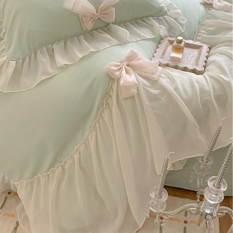 - Design:Chic ruffled lace bedding with beautiful bow, made this bedding set more elegant and unique.It's a romantic gift for all you loved one Christmas, New Year, Wedding, Birthday, Holiday and Anniversary etc