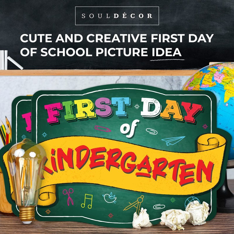 Soul Décor First Day of Kindergarten Photo Picture Prop, 2 PK Cute and Creative First Day of School Picture Idea, Green Board Sign | Unbreakable Plastic | Made in The USA