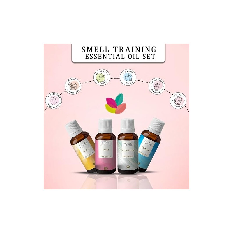 • Smell Training Kit 100% Pure Essential Oil- Therapeutic Grade Essential Oil- 4 x 10ml of Pure Lemon, Clove, Eucalyptus & Rose.