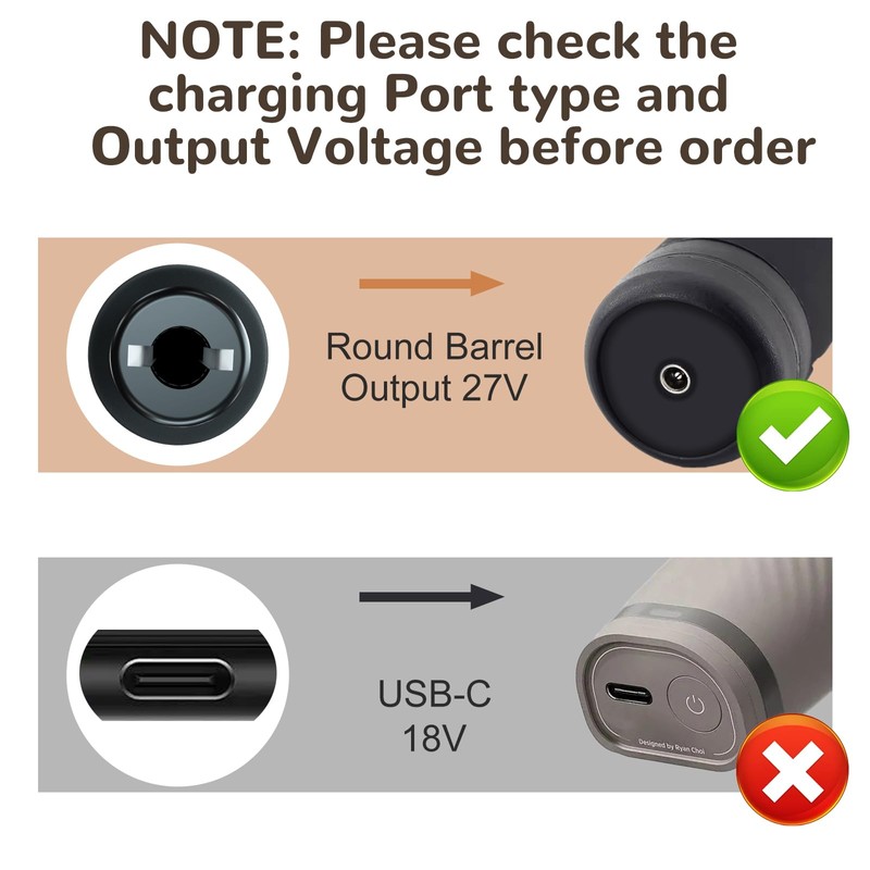 - Quality: Constructed with high-quality materials, this charger from SoulBay offers long-lasting performance and reliable charging for your massage gun. NOTE: 1) NOT for 12V / 18V version; 2)Please confirm the Output Voltage (27V), Connector type (Round Barrel) and listed Compatible models before order
