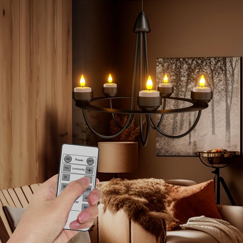 - REMOTE CONTROL TEA LIGHTS: Comes with a 12-Key Remote, which is simple and convenient to use, no need to manually turn on and off, You can also Set 2/4/6/8 Hours auto Timer, Increase and Decrease the Brightness, Control the Flickering Speeds, Select the Light Mode, such as Always ON and Breathing Flickering like real tea lights candles