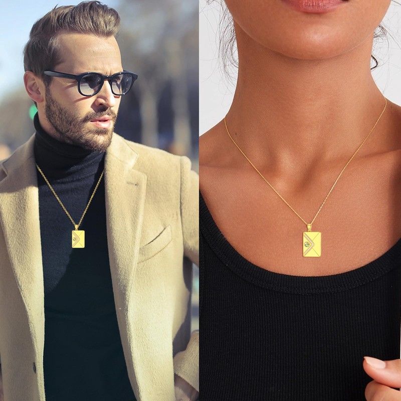 - [Unique Design]: Plated gold envelope locket necklaces carry a deep and sentimental connection to the wearer. It can serve as a tangible reminder of cherished memories, personal values, or meaningful relationships, fostering a sense of closeness and spiritual connection to the symbols held within the locket. Wearing it with/without picture. It is also a decent unisex necklace gift for those who want to hold her beloved one's photo.