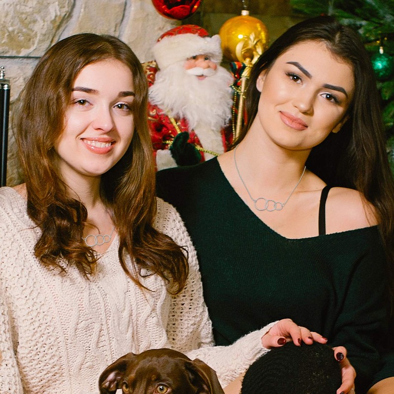 SOULMEET Sisters Necklace Gifts from Sister, Sterling Silver Three Circles Sister Necklace with Card, Christmas Mother's Day Birthday Jewelry for Sister