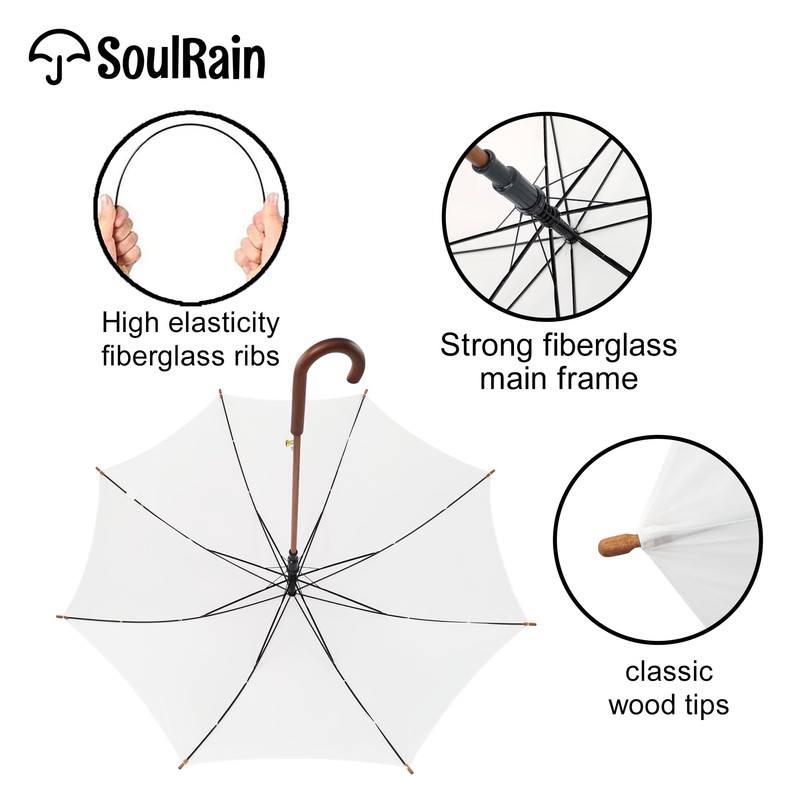 SoulRain 48" White Stick Umbrella – Large Windproof Wedding Umbrella for Rain...