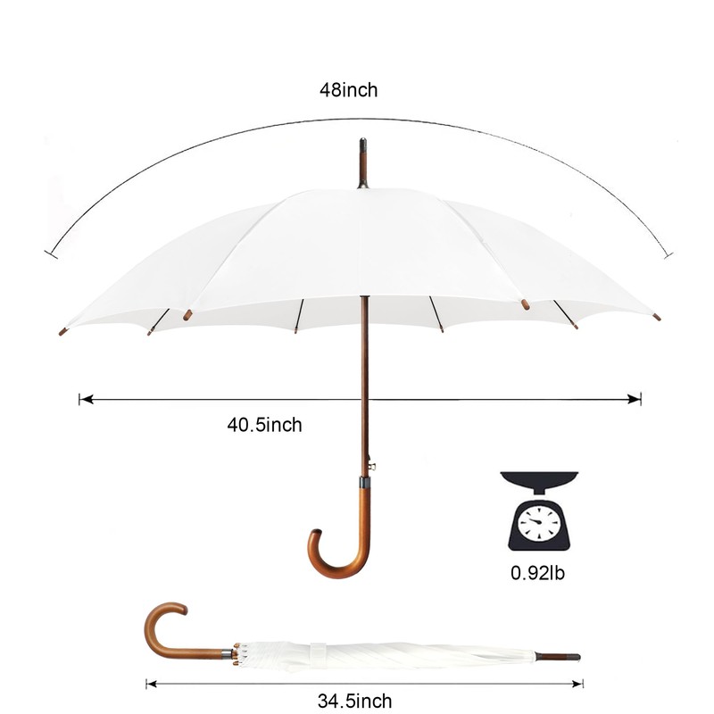 SoulRain 48" White Stick Umbrella – Large Windproof Wedding Umbrella for Rain, Automatic Open, Vintage Cane Umbrella with Wooden Handle & Shaft, Elegant Parasol for Women & Men(White)