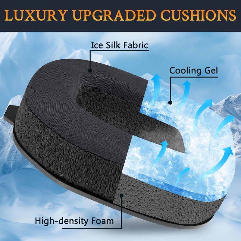 - 🎧Keep Your Ears Cool: The Soft Cooling-gel is added under the top layer fabric (breathable Ice Silk fabric) of the earpads, absorbing the sweat in the summer days and keeping your ears cool after a long time of use.
