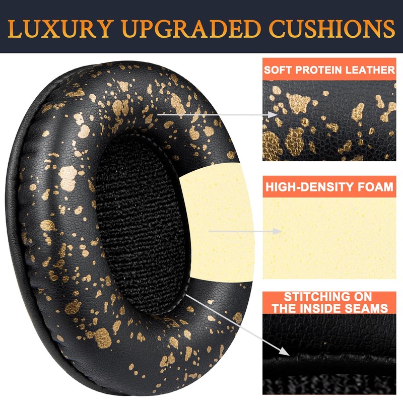 SOULWIT Earpads Replacement for MDR-7506 MDR-V6 MDR-V7 MDR-CD900ST Monitor Headphones, Ear Pads Cushions with Softer Protein Leather, High-Density Foam - Black Gold