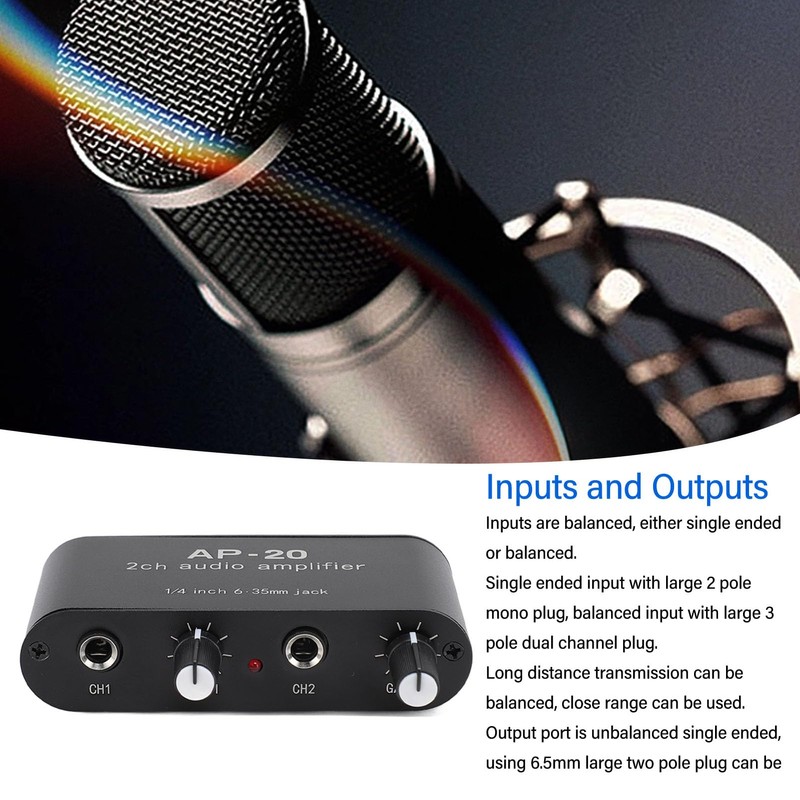 - DUAL CHANNEL: Independent dual channel amplification, gain independent adjustment (0‑20DB), the two channels can be used individually, can also be used at the same time, do not affect each other.