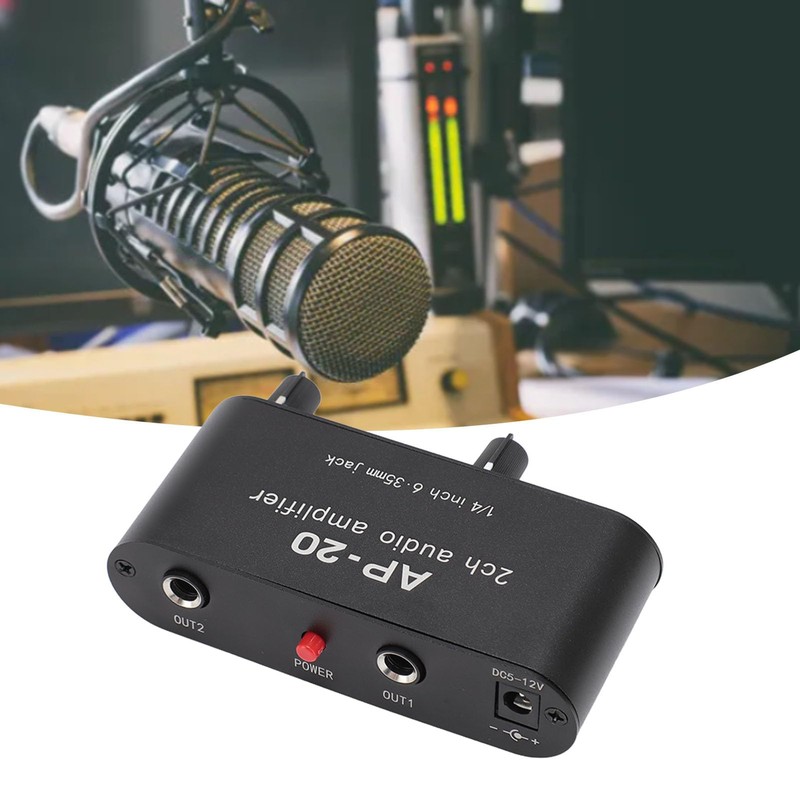 Sound Amplifier 2 Channel, Balanced 1/4 Inch 6.35mm Gain Independent Adjustment Stereo Sound Amplifier Preamplifier for Entertainment Home Speakers System