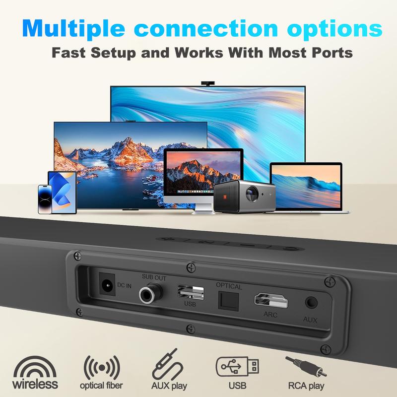 Sound Bar - 2.1 Audio Soundbar with Subwoofer, 160W Loud Volume, Wall Mountable, Wireless Sound Bar with HDTV, ARC, Optical, AUX Connectivity for TV, Projector, Computer outdoor home tv speakers