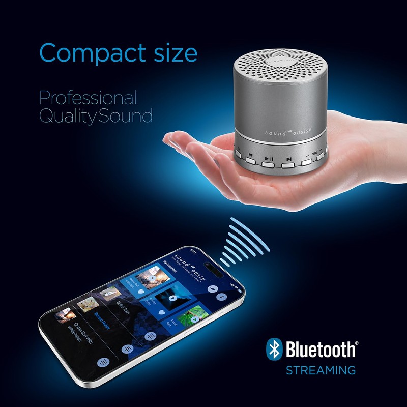 Sound Oasis Bluetooth White Noise Machine – Portable Sound Machine with 20 Non-Looping Nature, Pink & Brown Noise Sounds, Tinnitus Masker for Sleep, Baby, Office & Travel, Rechargeable