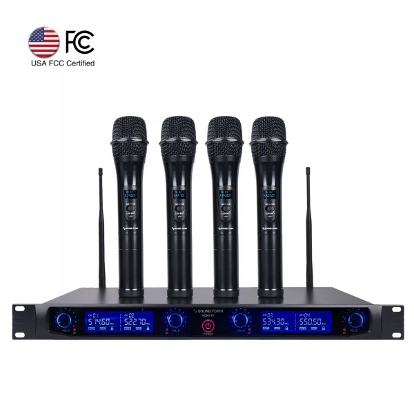 Sound Town 4 Channels UHF Wireless Mountable Metal Microphone Handheld NESO-F4HH