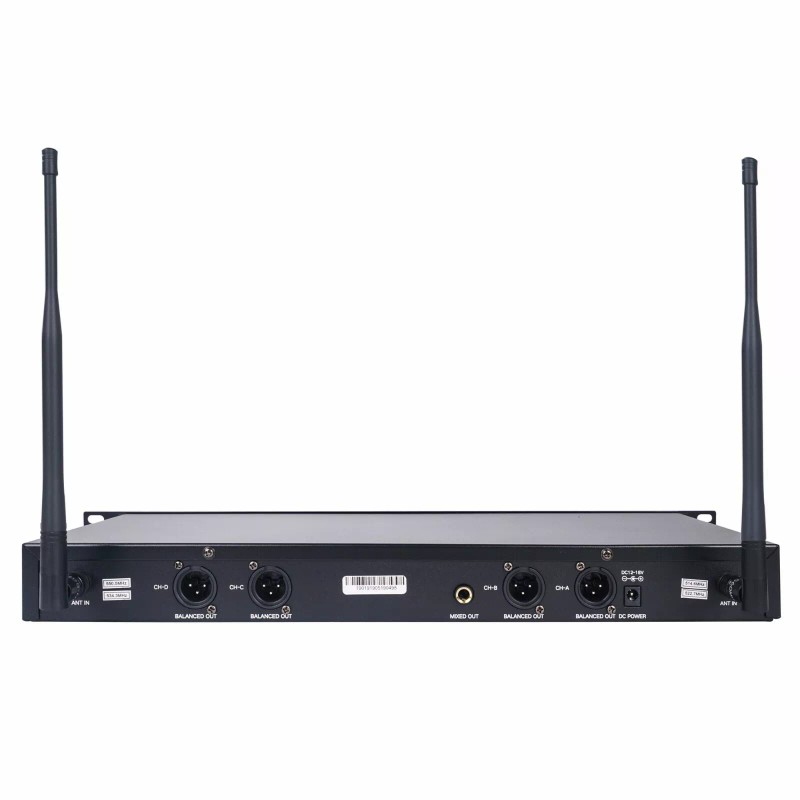- WHAT YOU GET: 1 x receiver, 4 x handheld microphones, 1 x power adapter, 1 x 1/4” audio cable, 1 x 1/4” to 1/8” audio adapter