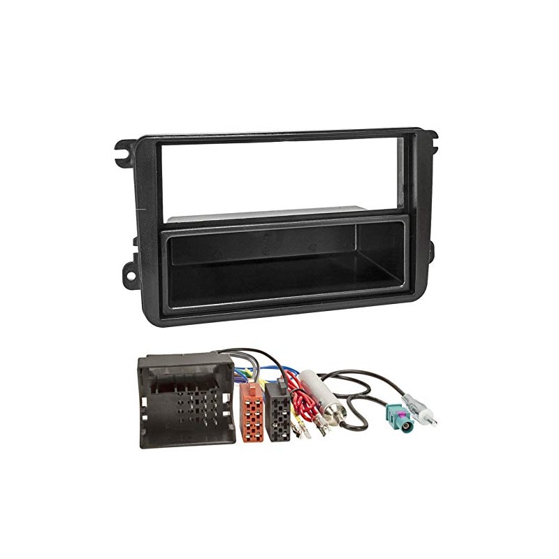 Sound-way Single DIN Car Radio Installation Kit, 1 DIN Front Panel Frame, Antenna Adapter, Iso Cable adapter compatible avec Volkswagen, Skoda, Seat