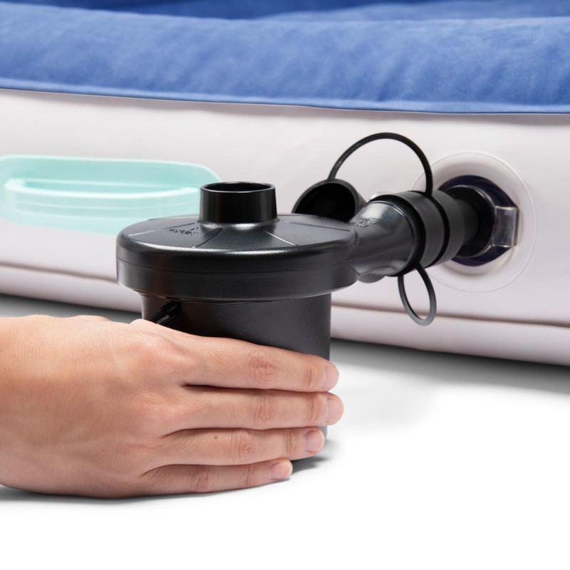 - QUICK INFLATION in under 2 minutes with included portable electric pump. Folds easily and compactly for storage with included carry bag.
