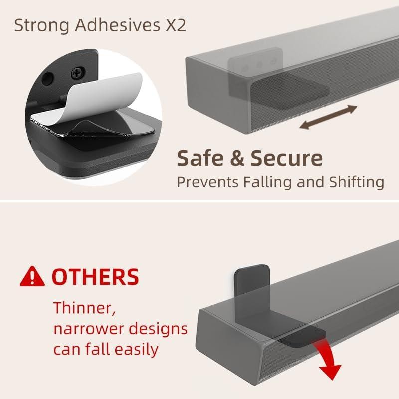 Effortless Installation& Adhesive: Mount your soundbar easily with everything you need in one kit.Clear instructions, all necessary hardware,and options for drywall, studs, brick, or concrete.The longer screws (4 cm) and expansion ensure a secure,lasting mount. and the ultra- double-sided tape holds firmly in place and is easy to stick and remove without .Simply follow the steps,use the spirit level for alignment,and enjoy a installation.