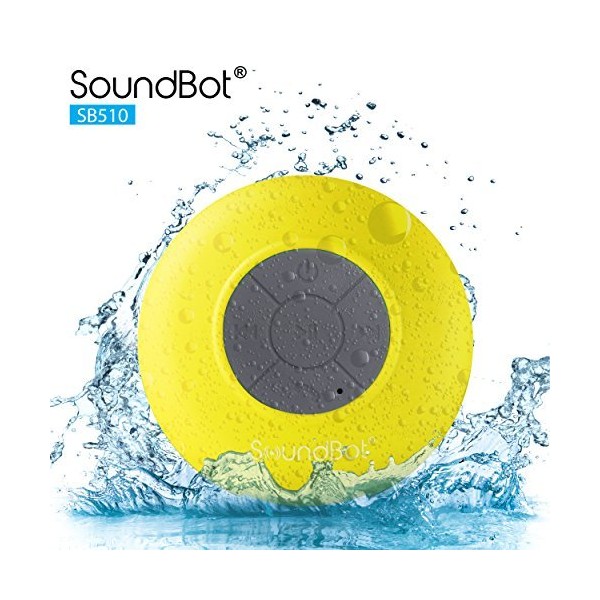 SoundBot SB510 HD Water Resistant Bluetooth 4.0 Shower Speaker, Handsfree Portable Speakerphone with Built-in Mic, 6hrs of Playtime, Control Buttons and Dedicated Suction Cup for Showers (White)