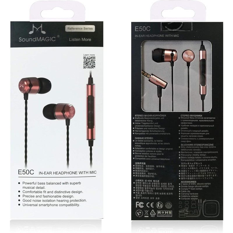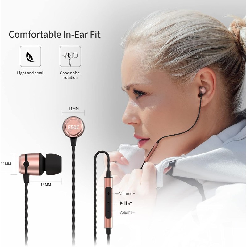 Soundmagic E50C In-Ear Isolating Earphones with Microphone [2024 Version] High-Resolution Sound Performance, Comfortable Fit, Anti-Tangle Cable, Full Metal Housing, High-Purity Copper - Gold