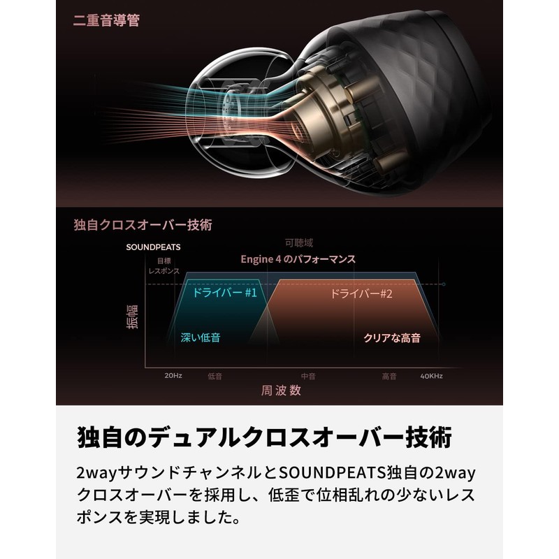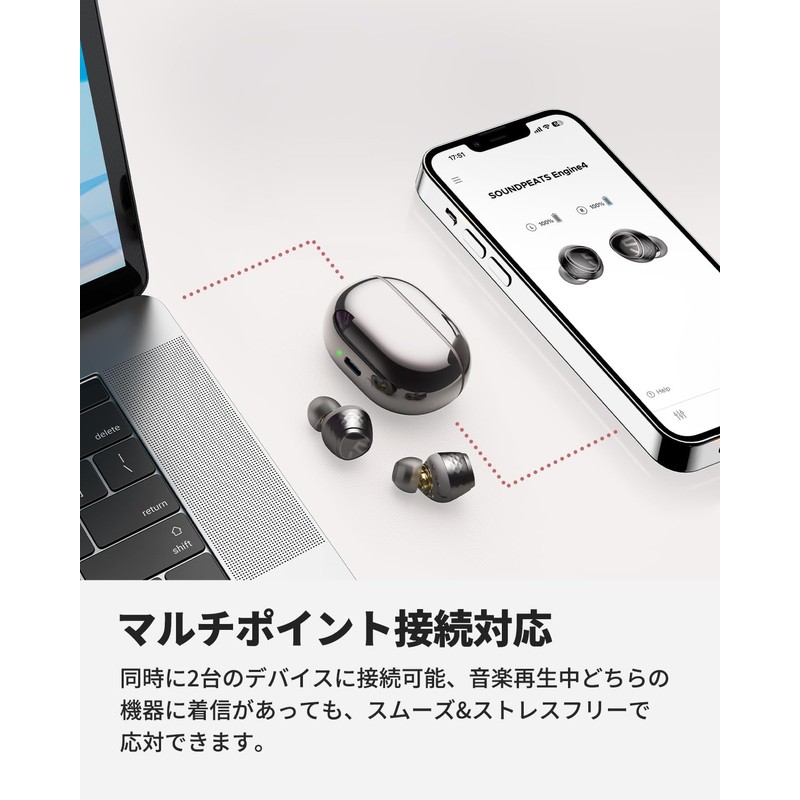 SOUNDPEATS Engine 4 Wireless Earphones, LDAC, Bluetooth 5.3 Earphones, Coaxial Dual Dynamic Driver, Up to 43 Hours Playback, Multipoint, Dedicated App, Game Mode, Call Noise