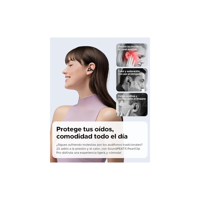 SoundPEATS PearlClip Pro Audífonos Inalámbricos Open-Ear Hi-Res LDAC Dual Dri...