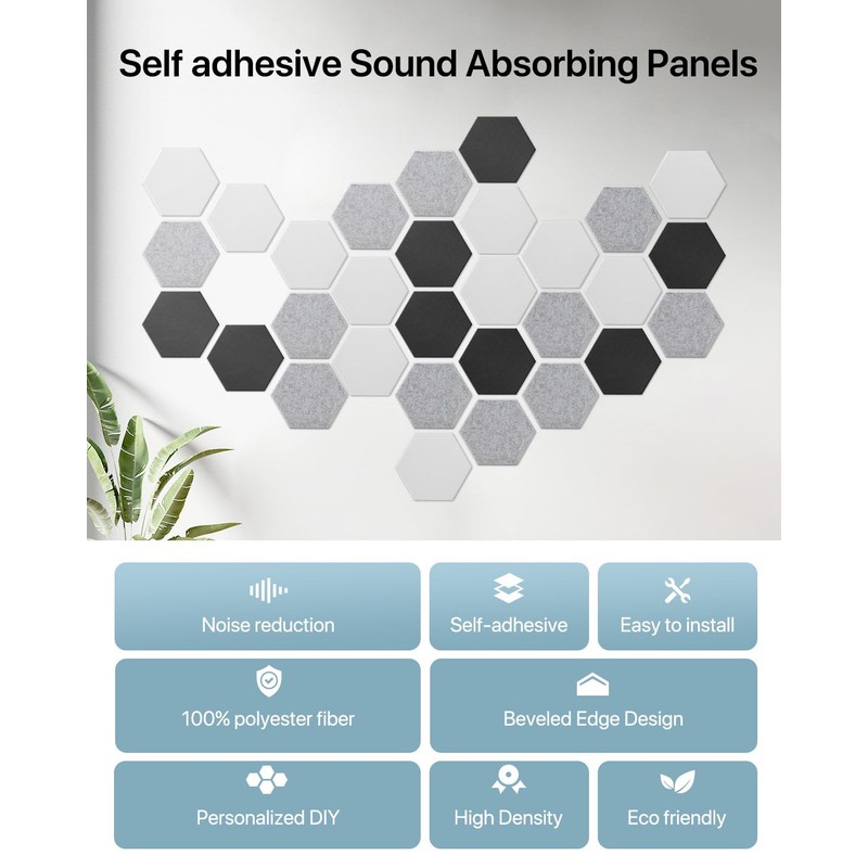 Soundsbay Acoustic Panels Sound Absorbing, 12 Pack Hexagon Soundproof Wall Panels High Density Sound Absorbing Panel, Sound Proof Foam Panels for Wall, Office, Reccording Studio 12" X 10" X 0.4"